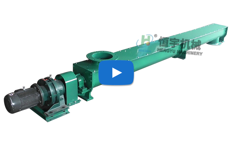 U型螺旋輸送機是一種利用電機帶動螺旋回轉,推移物料以實現輸送目的的機械。當螺旋軸轉動時,由于物料的重力及其與槽體壁所產生的摩擦力,使物料只能在葉片的推送下沿著輸送機的槽底向前移動,其情況好像不能旋轉的螺母沿著旋轉的螺桿作平移運動一樣。物料在中間軸承的運移,則是依靠后面前進著的物料的推力。所以,物料在輸送機中的運送,完全是一種滑移運動。